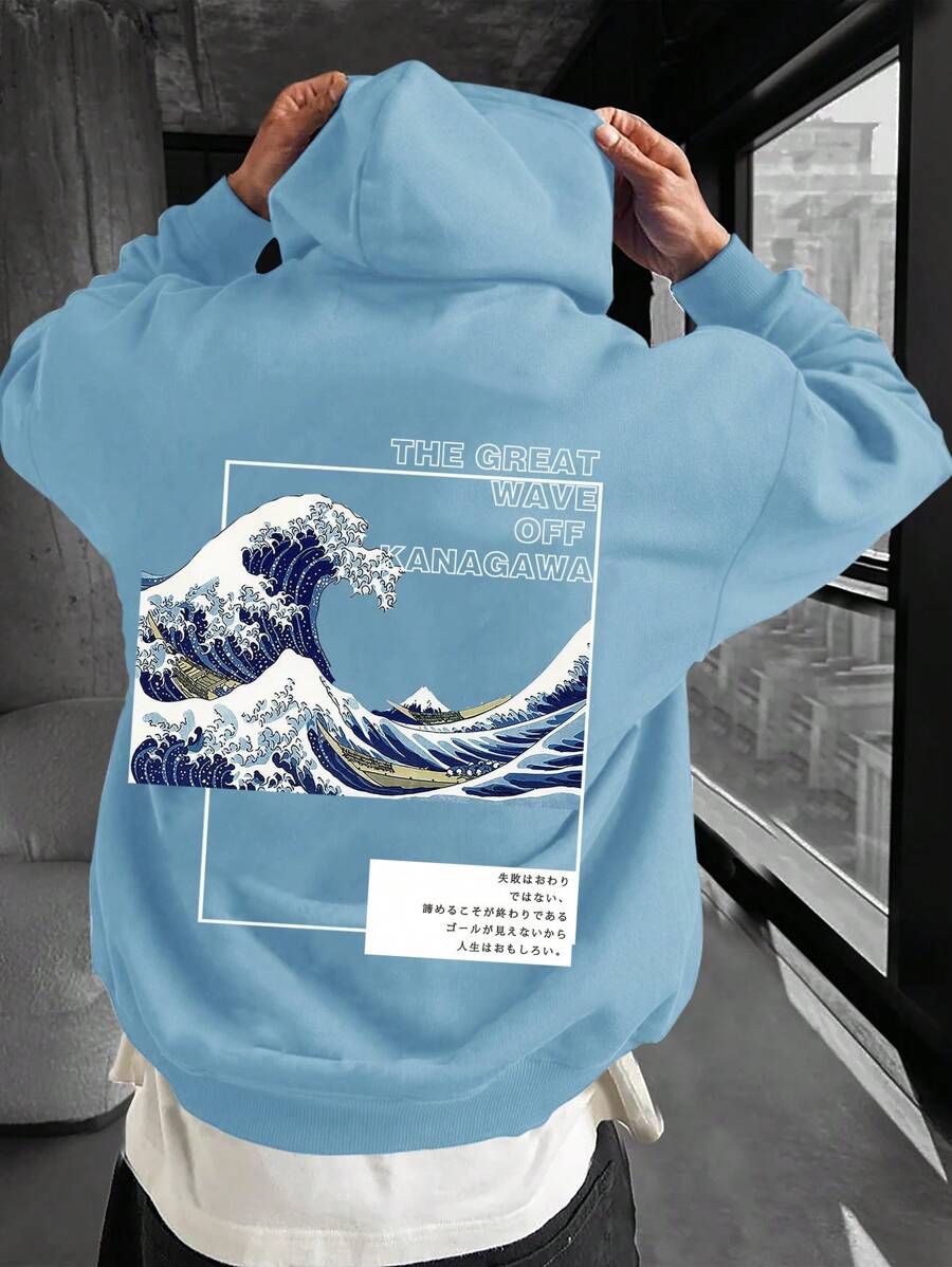 Manfinity Men Wave & Slogan Graphic Kangaroo Pocket Drawstring Hoodie