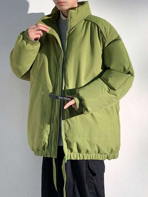 Manfinity Men Zip Up Elastic Hem Puffer Coat