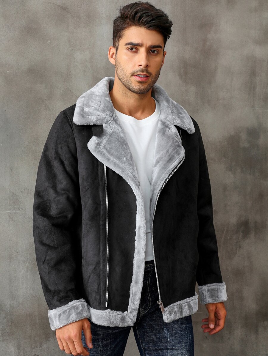 RELISH NOLESS Men Zip Up Lapel Neck Teddy Lined Coat