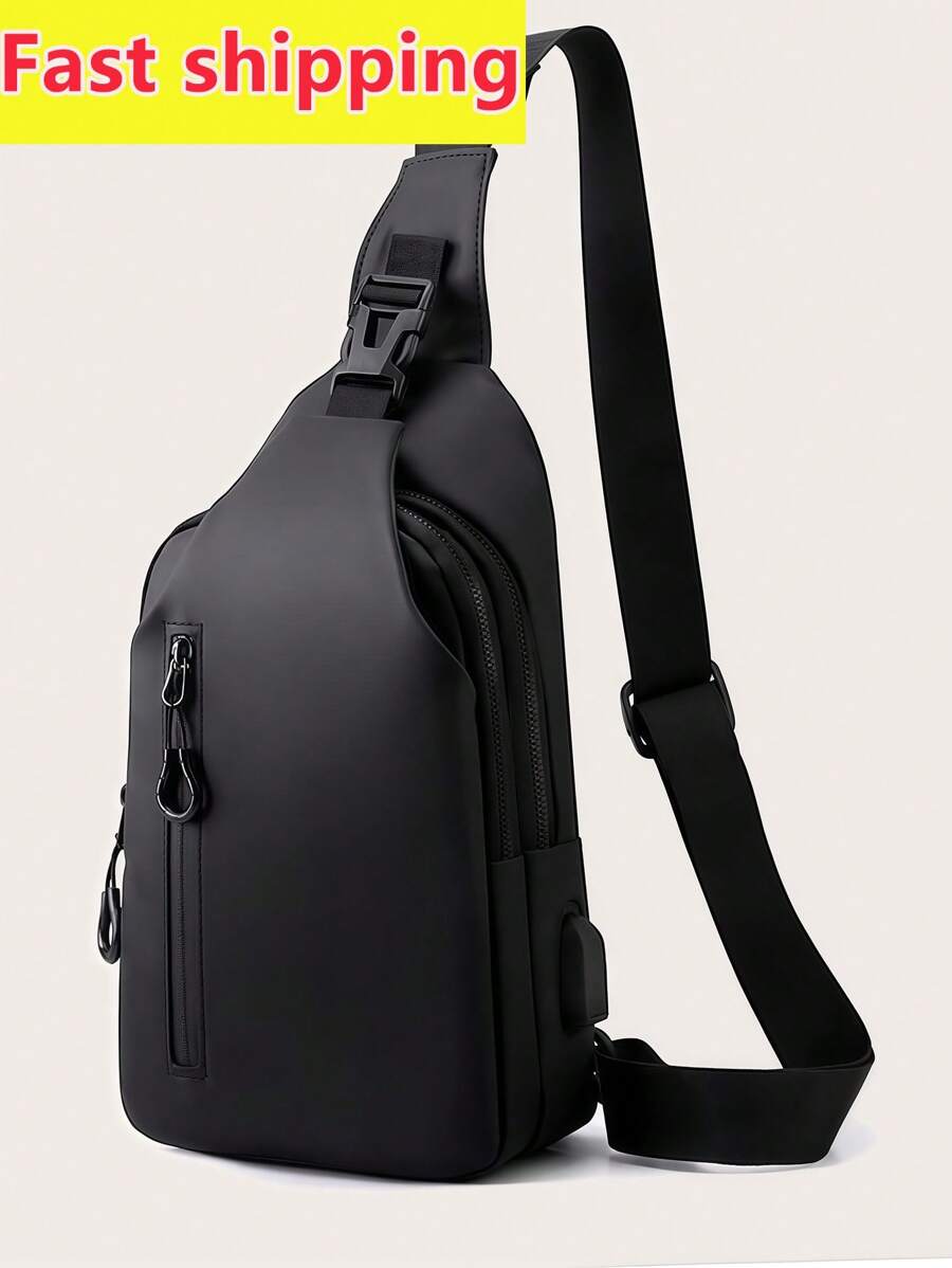 Men's Multifunctional Chest Bag With USB Charging Port, Lightweight Shoulder Bag Mobile Phone, Versatile Solid Color Sports Crossbody Bag, Large Capacity Sling Bags Water-Proof Daily Commuting Winter Bum Bag Outdoor Black Bag Vacation Travel Bag Gifts Valentine Day Valentines Fanny Pack Stickers Summer Back To School Valentines Gifts Valentine Gifts Bag Pack Belt Bag Waist Bag Spring School Supplies Purse Side Bags Belts New Life Items For Students Purse Essentials Graduation Small Bag For Men Body Bag For Men Hiking Accessories Pouch