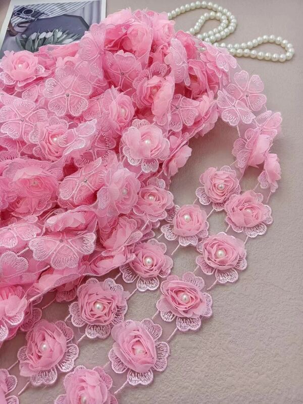 Mesh Embroidered 3d Beaded Flower Lace Trim Decorative Ribbon For Clothing Accessories