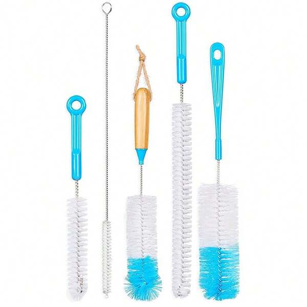 Microfiber Bottle Brush Cleaner Pack, Set Of 5 Bottle Brushes For Cleaning Baby Bottles, Water Bottles, Tumblers, Wine Decanters, Flask, , Vase Cleaner, One Straw Cleaner Brushh