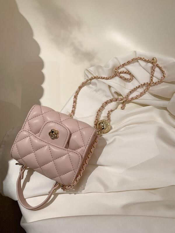 Mini Bag, Crossbody Bag, Square Fashionable Women's Bag, Metallic Chain Decor Square Bag, Handbag, Phone Bag, Lipstick Bag