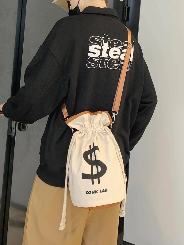 Mini Bucket Bag Letter Print Drawstring, Handbag Schoolbag Sling Bag Sport Bag For High School University Student For Travel College School Shoulder Bag Crossbody Bag Side Bag Holiday Essentials Going Out Lightweight Carry On With Adjustable Strap Nylon Portable Outdoor Funny GIfts Men Gifts Present Valentines Gifts Black Friday