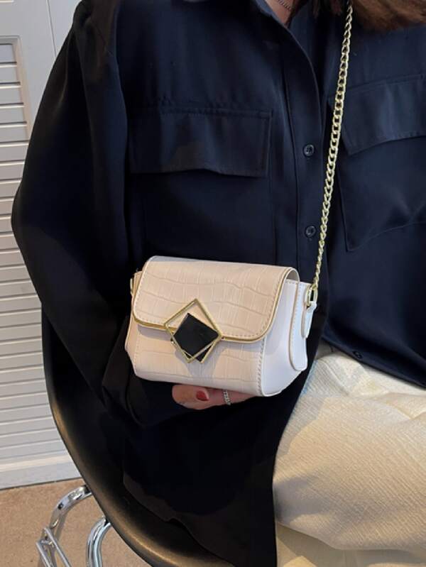 Mini Crocodile Embossed Metal Lock Flap Chain Square Bag