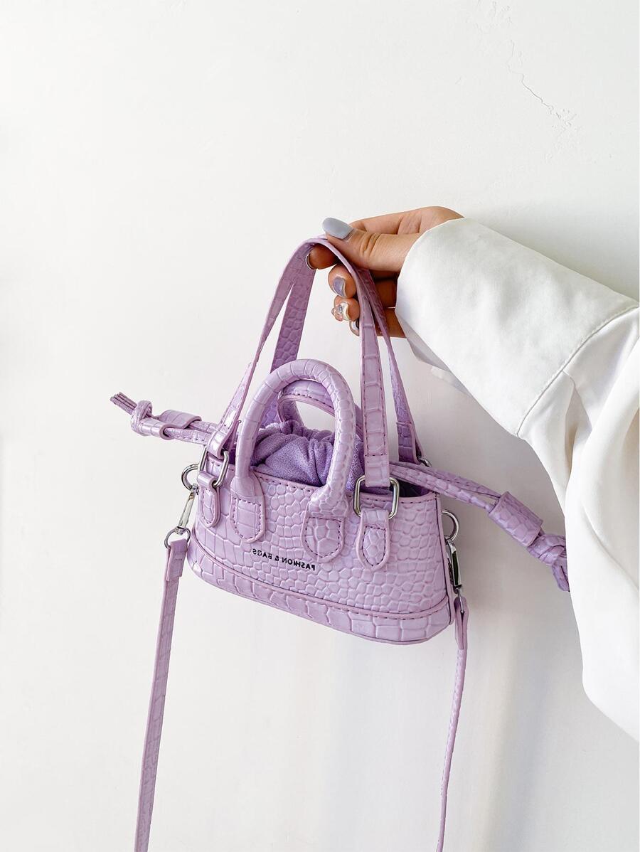 Mini Crocodile Embossed Satchel Bag Letter Detail Double Handle