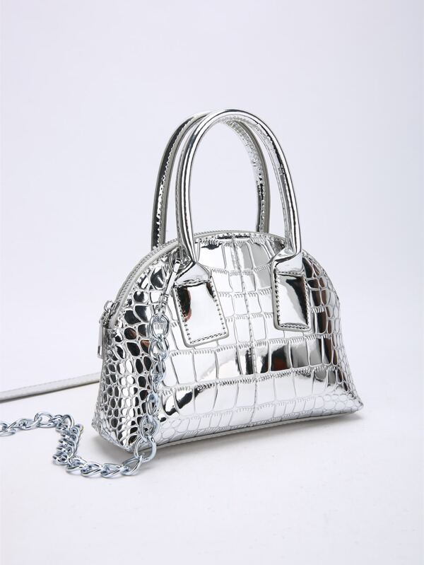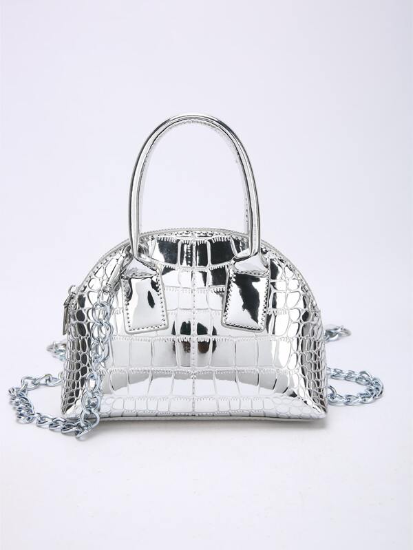 Mini Metallic Crocodile Embossed Dome Bag