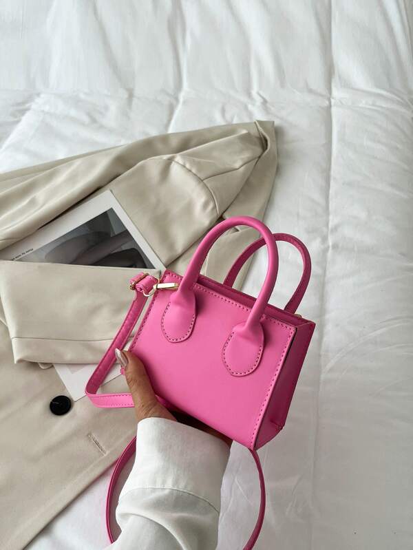 Mini Neon Pink Double Handle Square Bag pink
