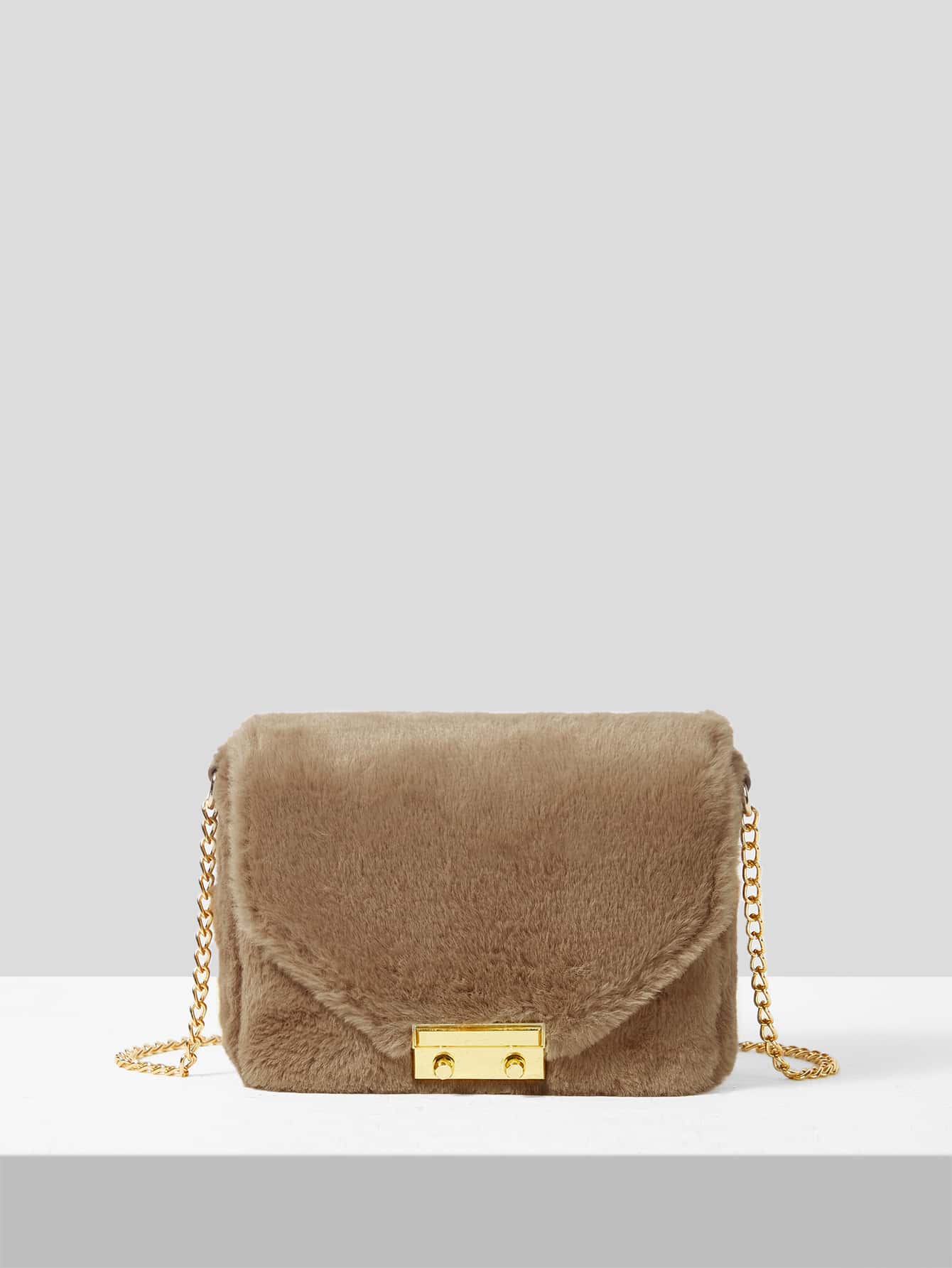 Mini Push Lock Fuzzy Chain Flap Square Bag