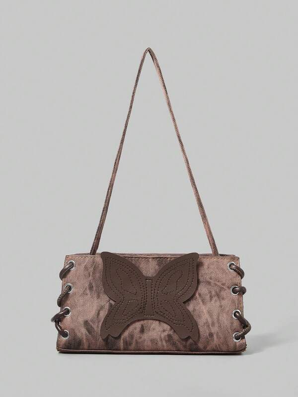 ROMWE Fairycore Mini Square Bag Fashion Butterfly Patched For Work