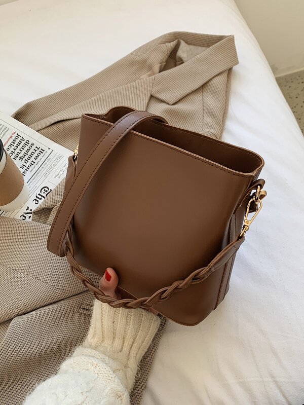 Minimalist Braided Design Bucket Bag