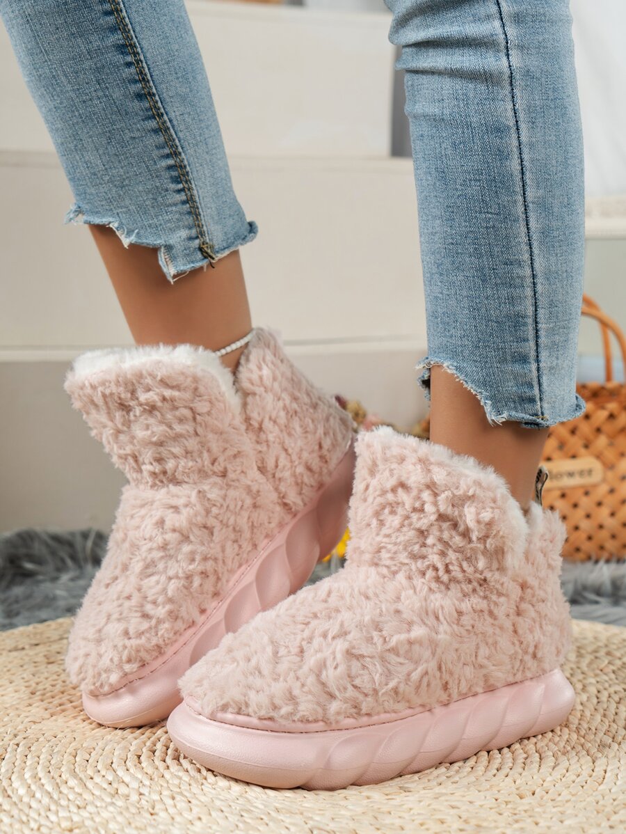 Minimalist Fuzzy Slip-On Slipper Boots