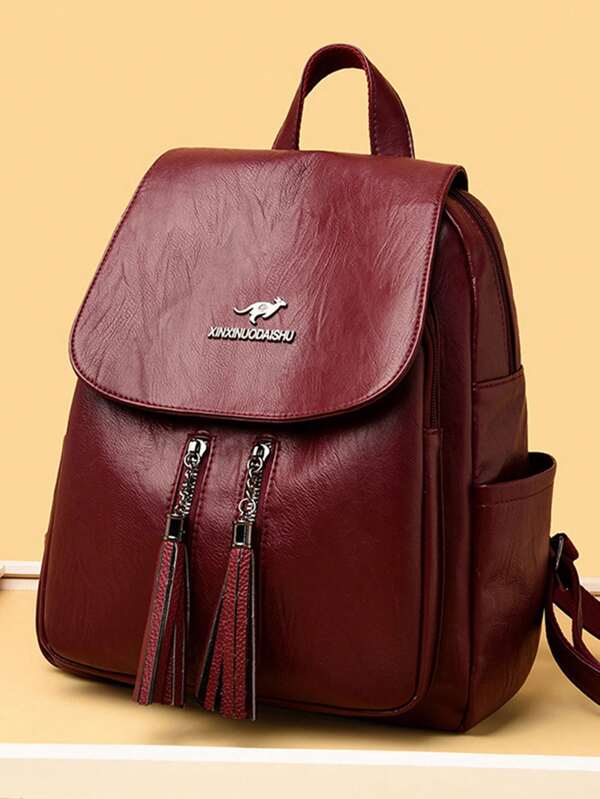 Minimalist Pu Leather Women'S Backpack, Vintage Solid Color Ladies' Backpack, Fashionable Casual Large Capacity Dual-Use Shoulder Bag For Women