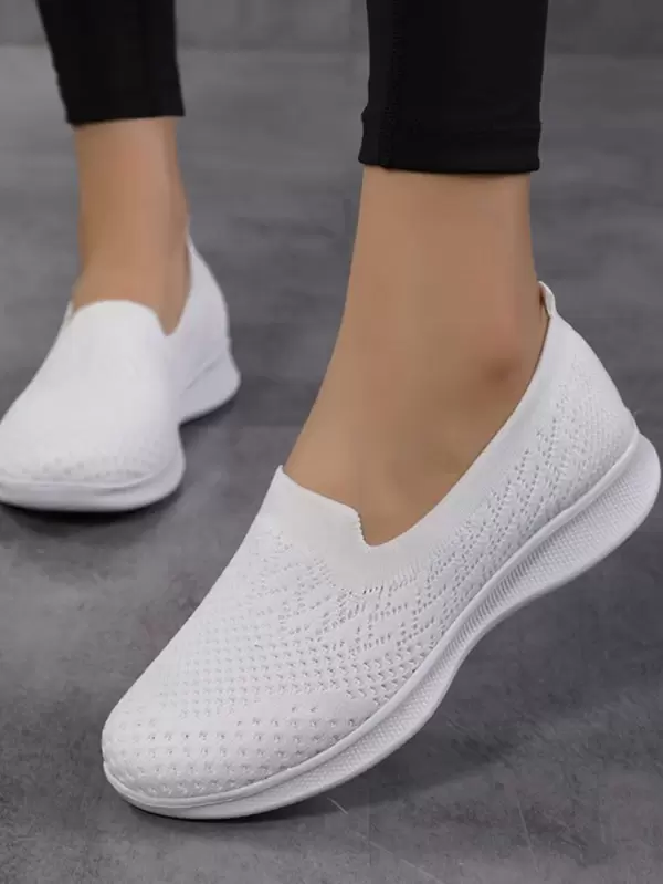 Minimalist Slip On Casual Shoes, White Sporty Solid Color Slip-on Shoes