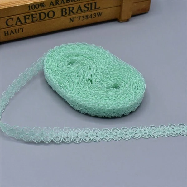 Mint Green Beautiful 9 Meters Lace Ribbon Tape 14MM Quality Lace Trim DIY Embroidered Lace For Sewing Decoration African Lace Fabric