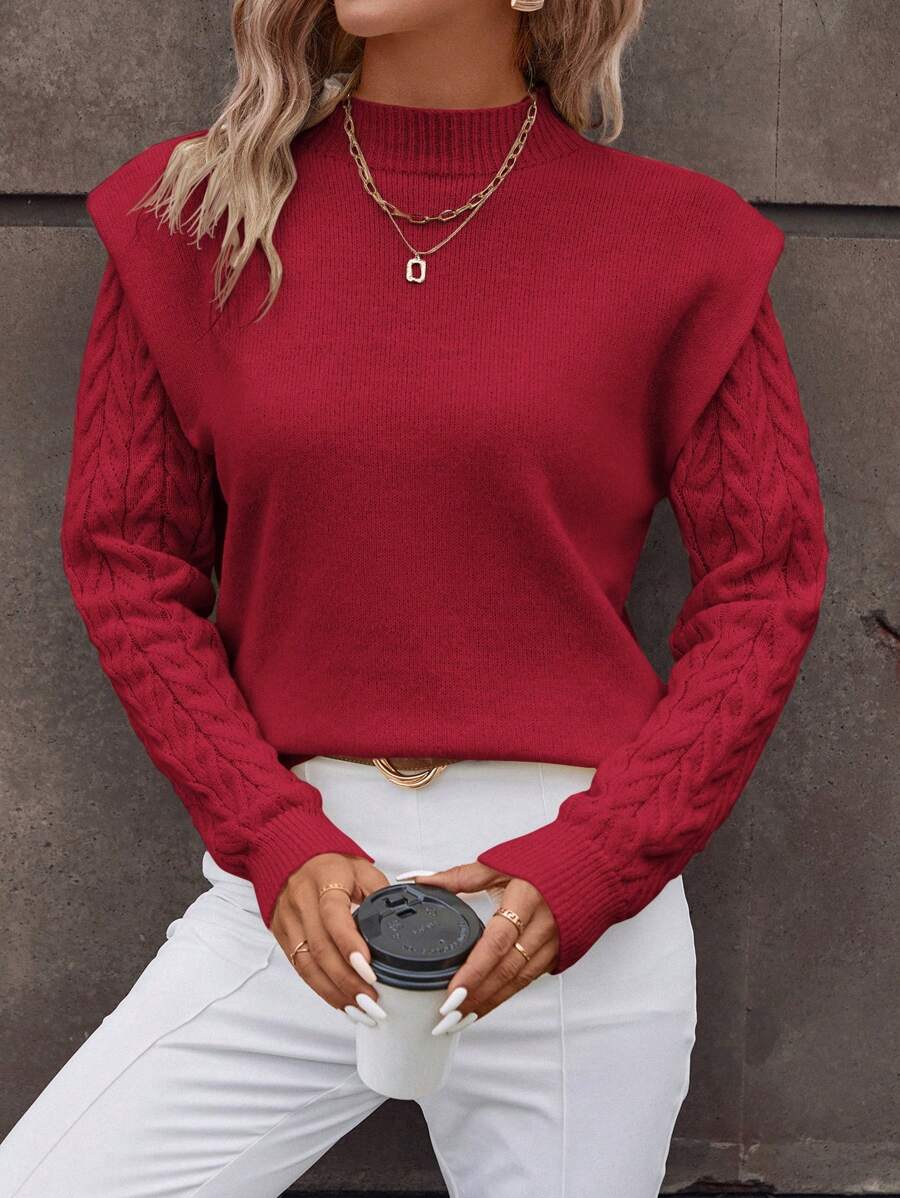 SHEIN Clasi Mock Neck Cable Knit Sweater