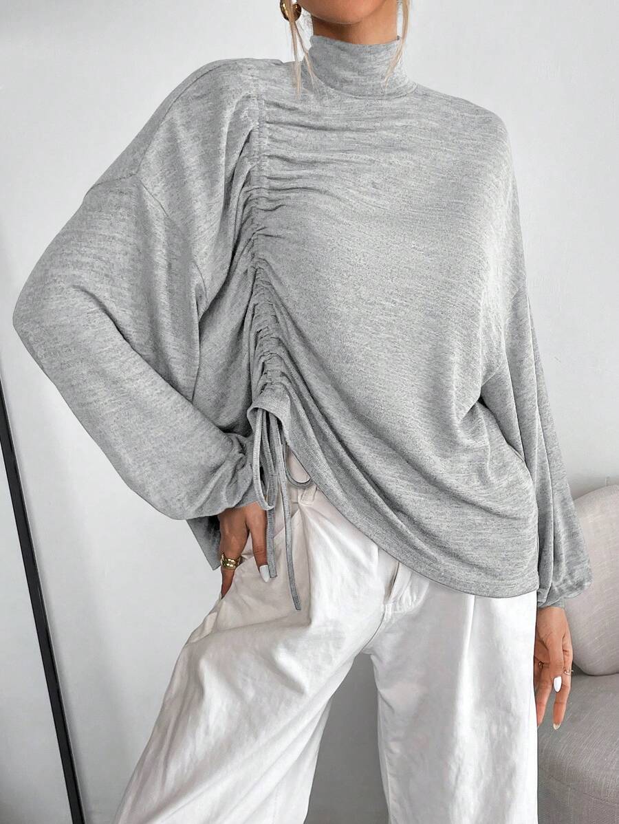 SHEIN Essnce Mock Neck Drawstring Front Drop Shoulder Tee