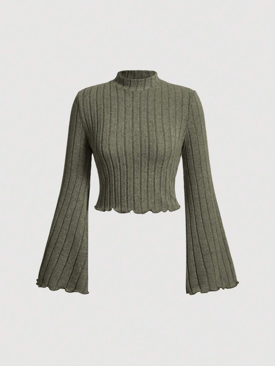 SHEIN MOD Mock Neck Lettuce Trim Trumpet Sleeve Lettuce Trim Tee