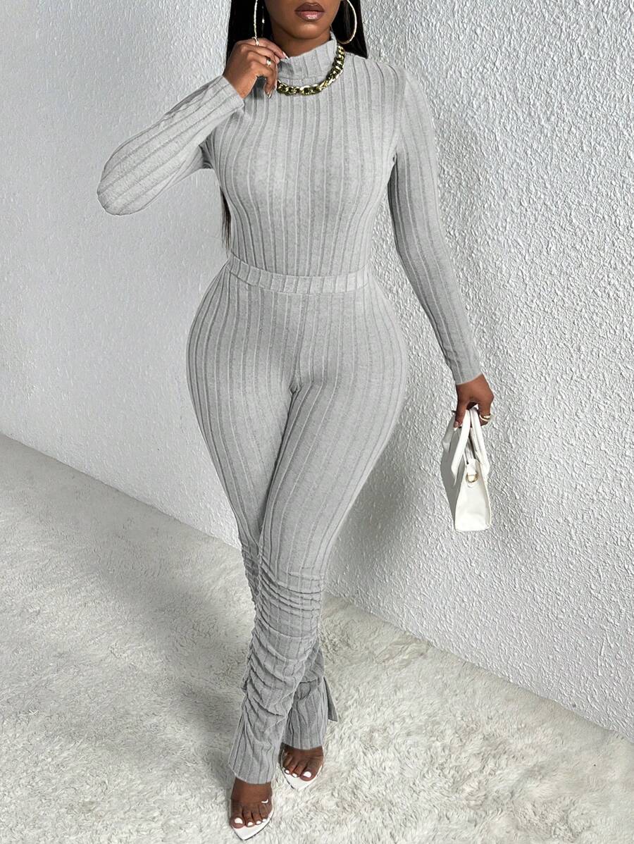 SHEIN Slayr Mock Neck Rib-knit Tee & Ruched Pants