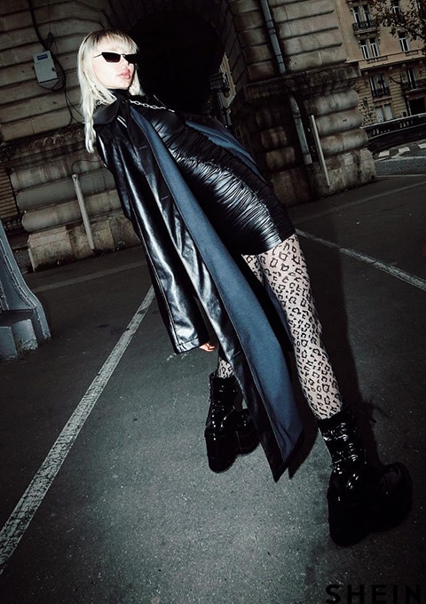 SHEIN SXY Mock Neck Ruched PU Leather Bodycon Dress