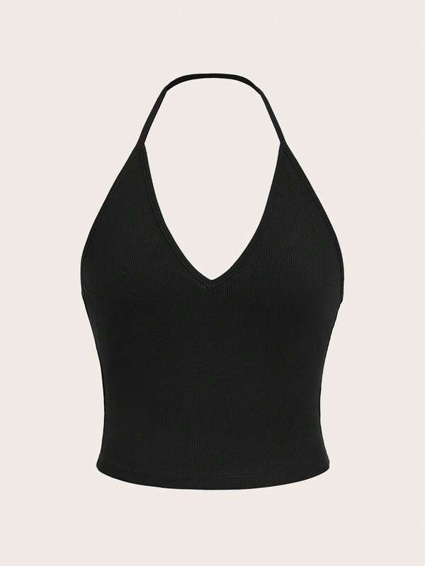 SHEIN EZwear Multicolor Knitted Halter Neck Tank Top