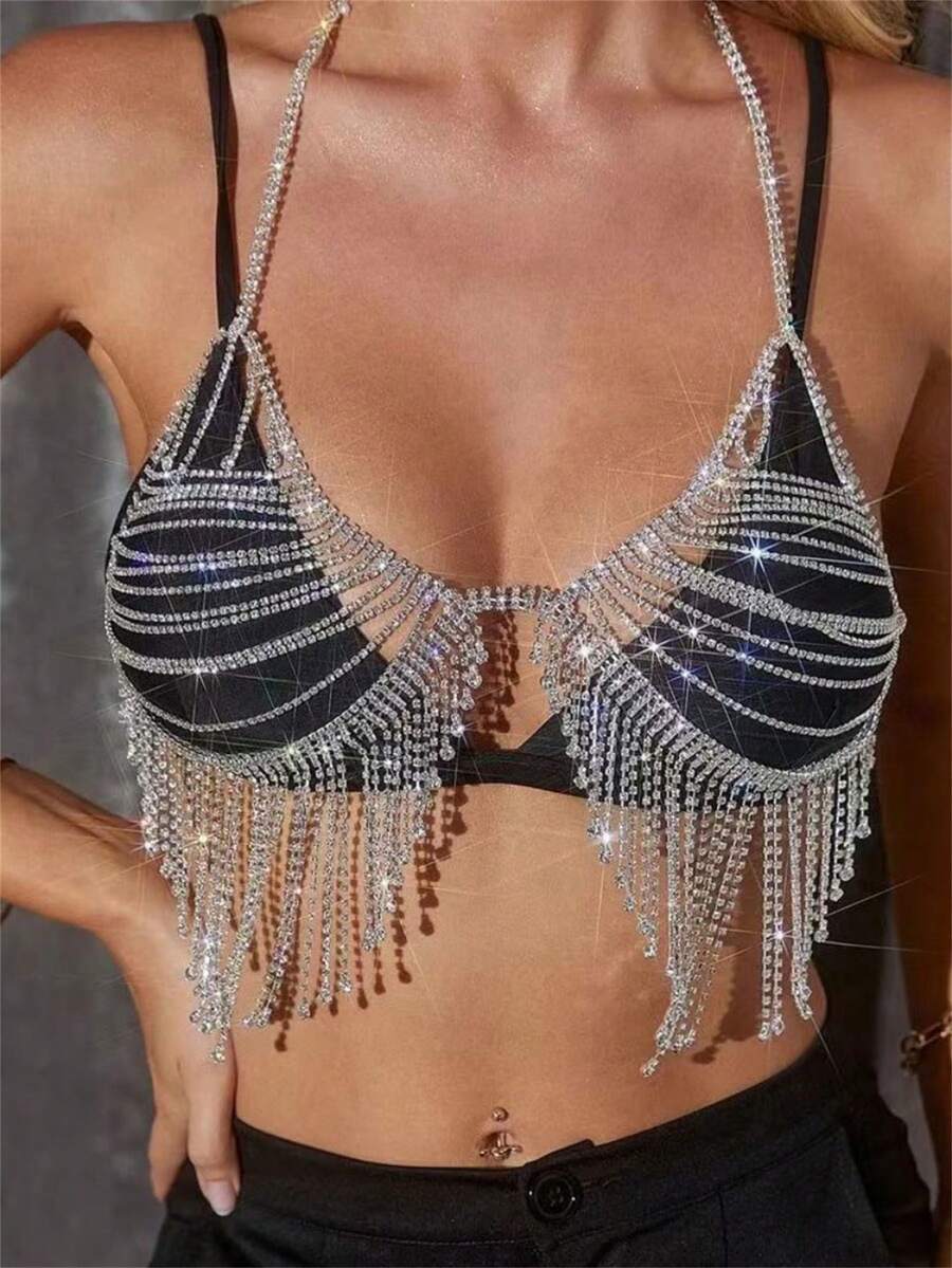 Multilayer Rhinestone Tassel Body Chain For Bra
