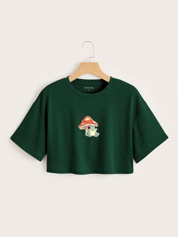 Mushroom Print Drop Shoulder Crop Tee
