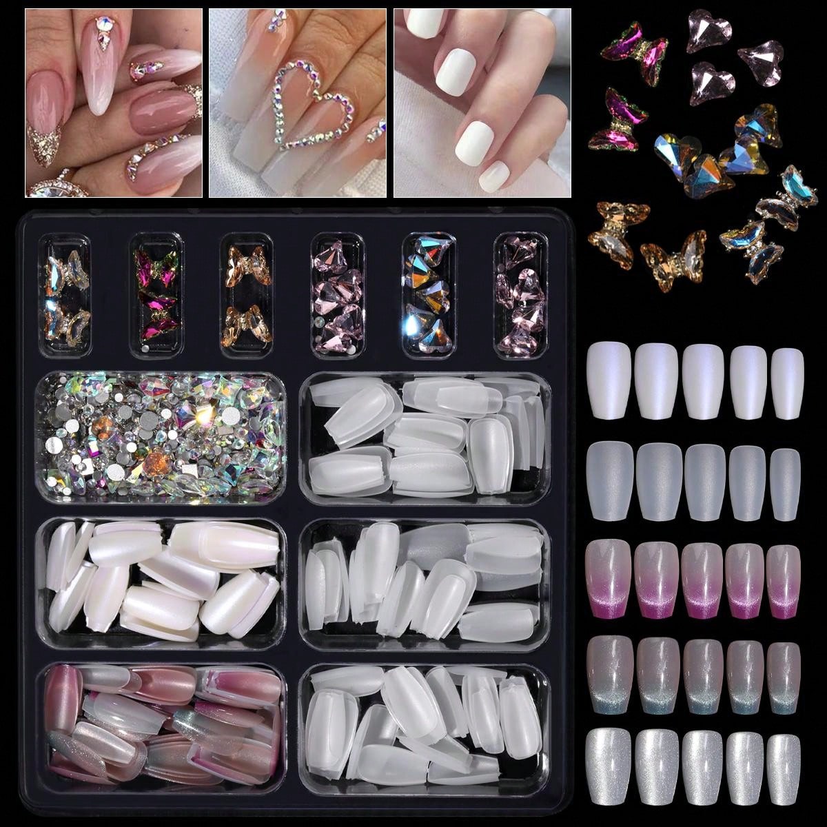 Nail Art Diy Kit, Square Short Cat Eye Effect Wearing Nails And Nail Rhinestones, Color Box Package