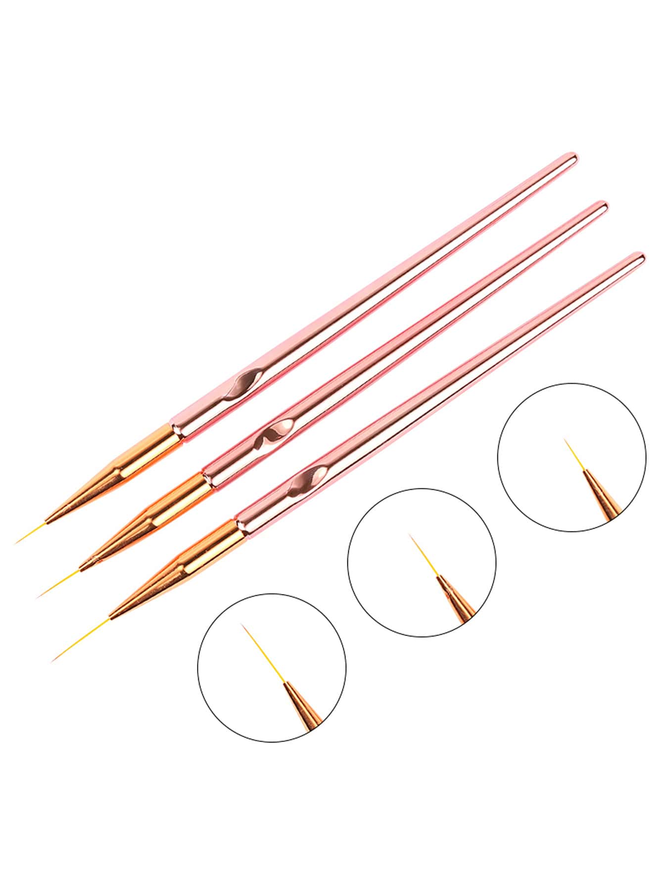 Nail Art Line Drawing Pen 3pcs Rose Gold Plated Handle Gradient Color Brush Striping Gel Polish Design Tools