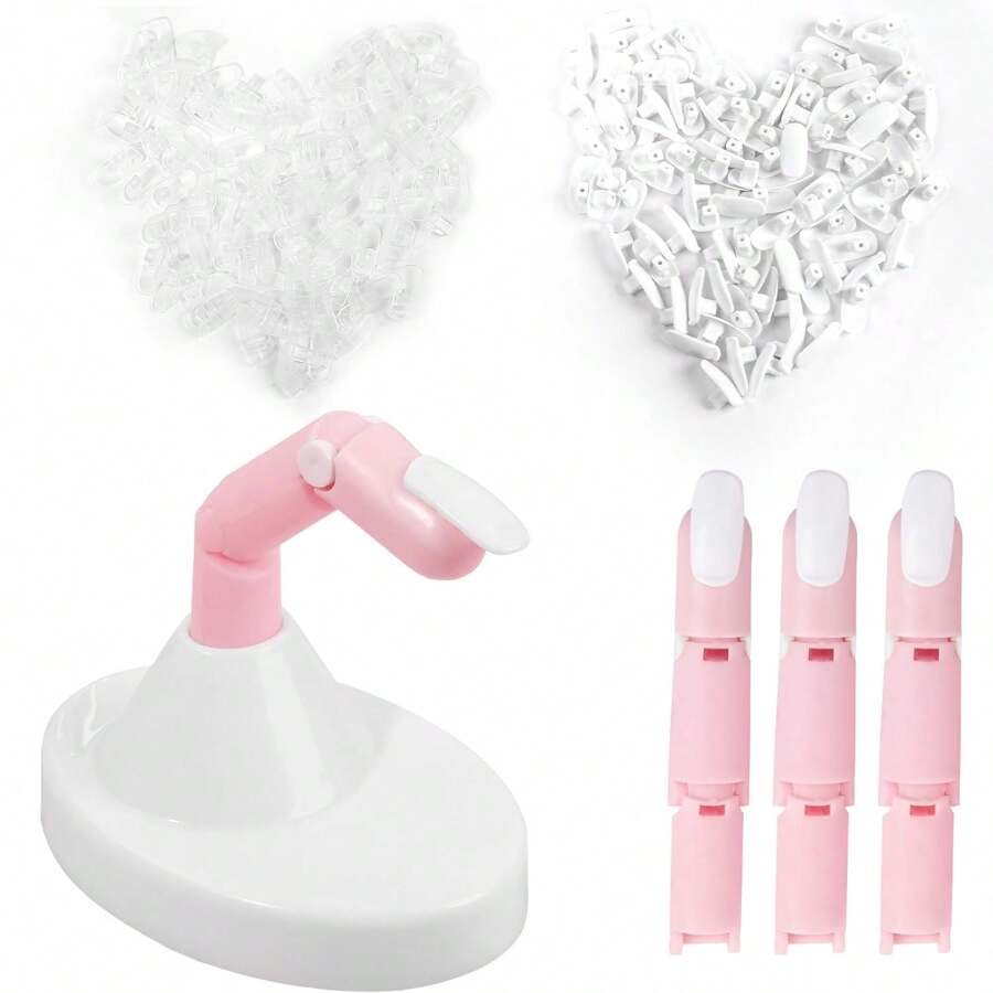 Nail Practice Finger For Acrylic Nails, 3PCS Adjustable Fake Mannequin Fingers With 1PC Acrylic Finger Base,100 Pcs White And 100 Pcs Transparent Nail Tips, Movable Flexible Training Fake Finger Nail To Practice Nail Art