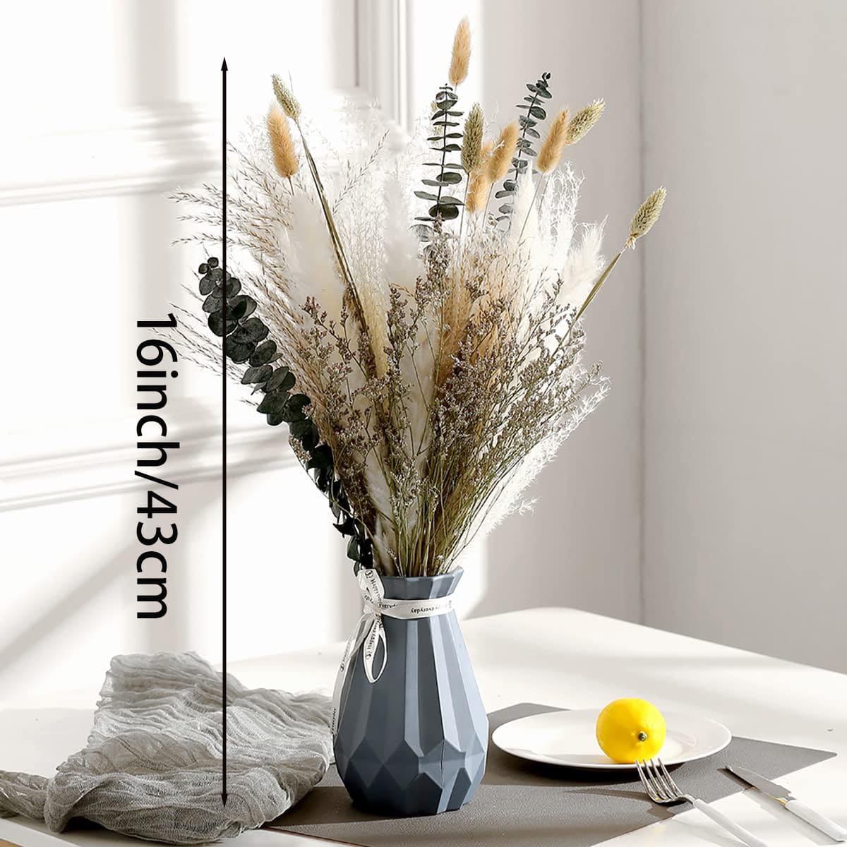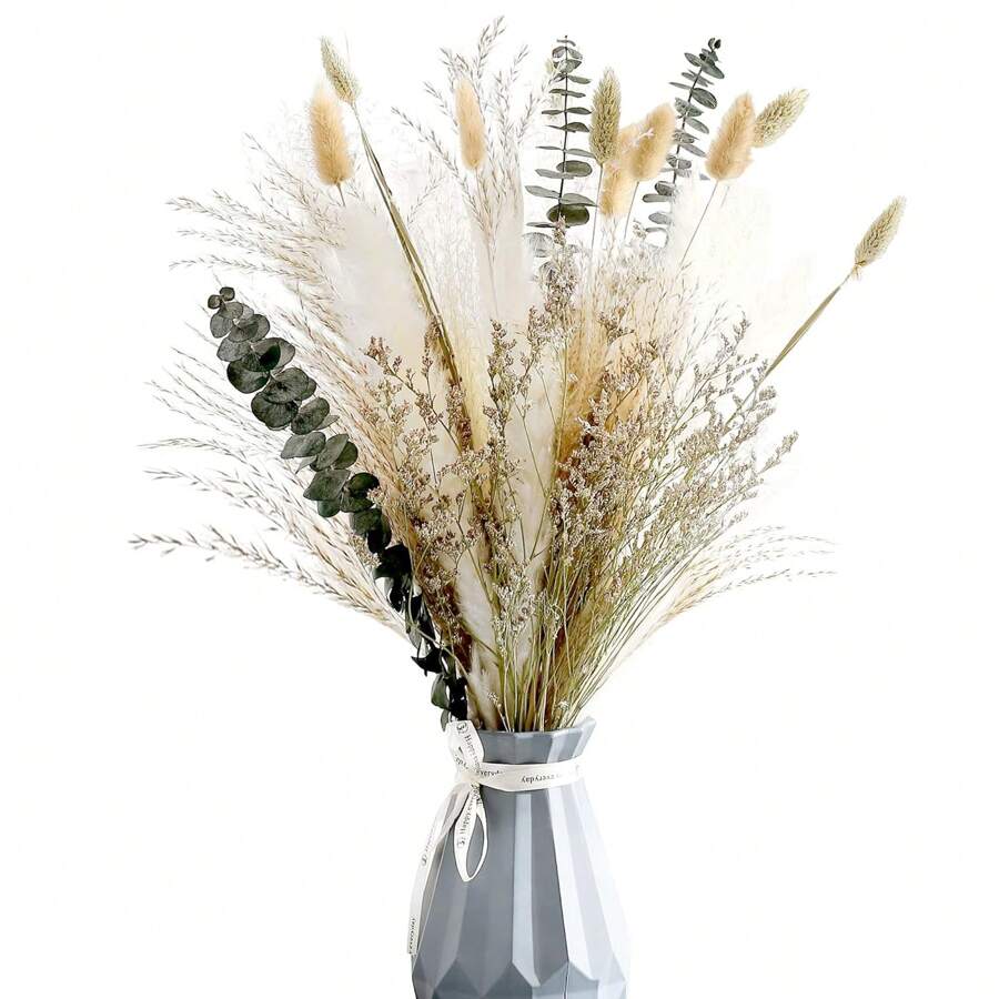 Natural Dried Flower Bouquet,17" Dried Flowers For Decoration,Dried Floral Arrangements For Home Décor Indoor With Pampas(Green)
