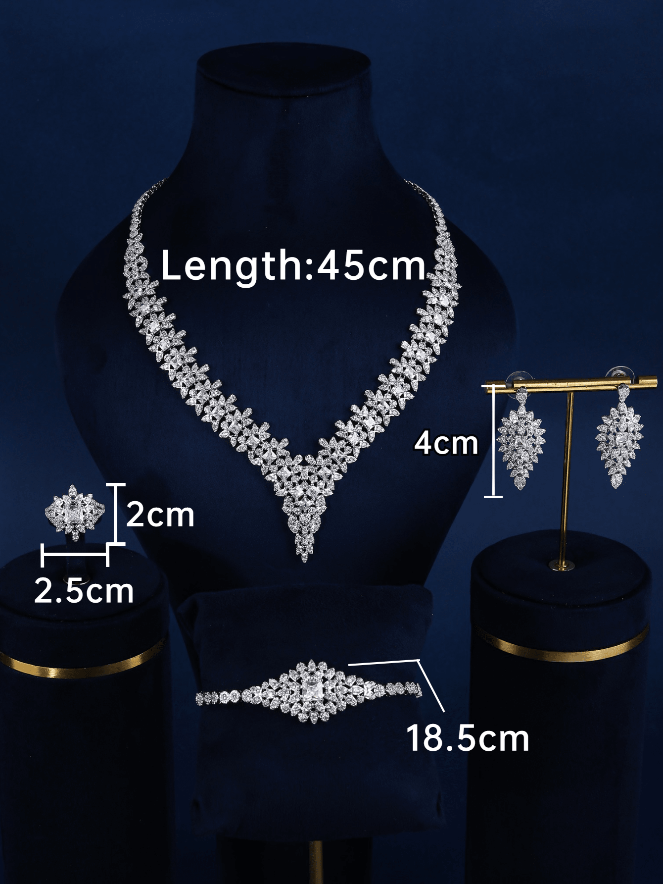 New 4pcs Luxury Necklace Ring Bracelet Earring Rhodium Platinum Plating Jewelry Set With 3A For Party Wedding Bridal