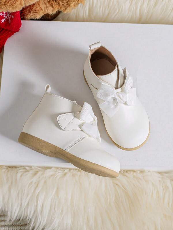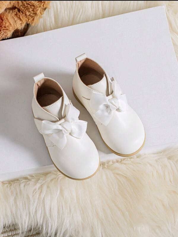 New Arrival Girls' Fashionable Princess Short Boots For Autumn And Winter With Bowknot, Student Boots English Style, Beige