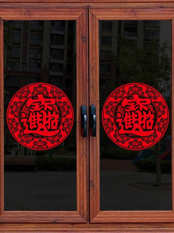 New Arrival Red Chinese Style Wall Sticker For New Year Decor, Including Removable Lucky Character Glass Window Sticker For Bedroom & Glass Door Decoration During 2024 Spring Festival