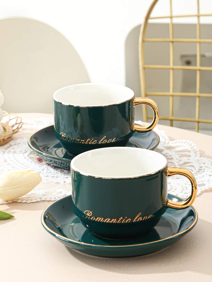 New Arrival Stylish Ceramic Coffee Cup With Handle And Saucer Set, 1 Cup And 1 Dish
