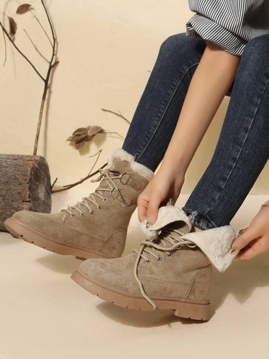 New Arrival Winter Fashionable Comfortable And Warm Fluffy Lined Moto Boots For Women