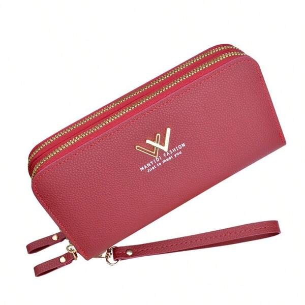 New Arrival Women'S Long Wallet, Clutch Purse With Double Zipper, Fashionable & Simple-Design, Large Capacity Card Holder & Mobile Phone Pocket, Two-Layer Cash Pocket