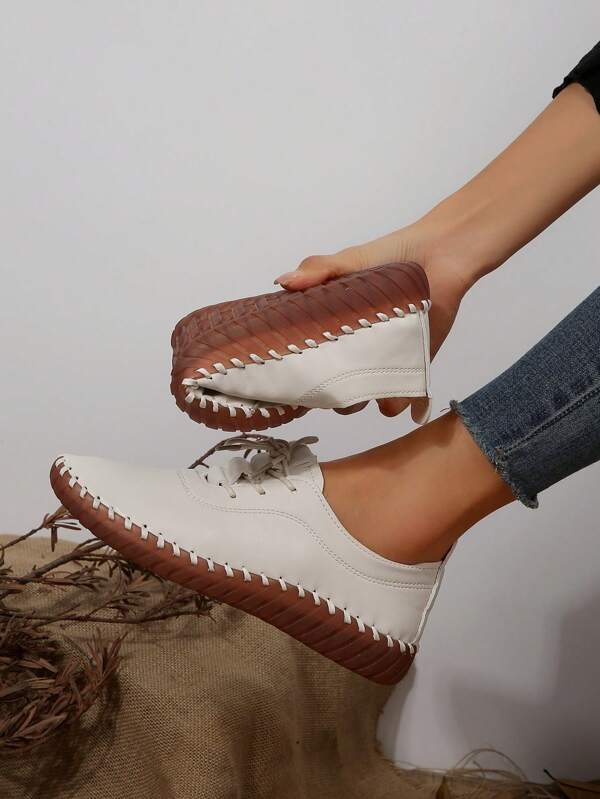 New Arrival Women's Plus Size Flat Shoes, Maternity Shoes, Sneakers With Cow Muscle Sole And Lace-up Closure