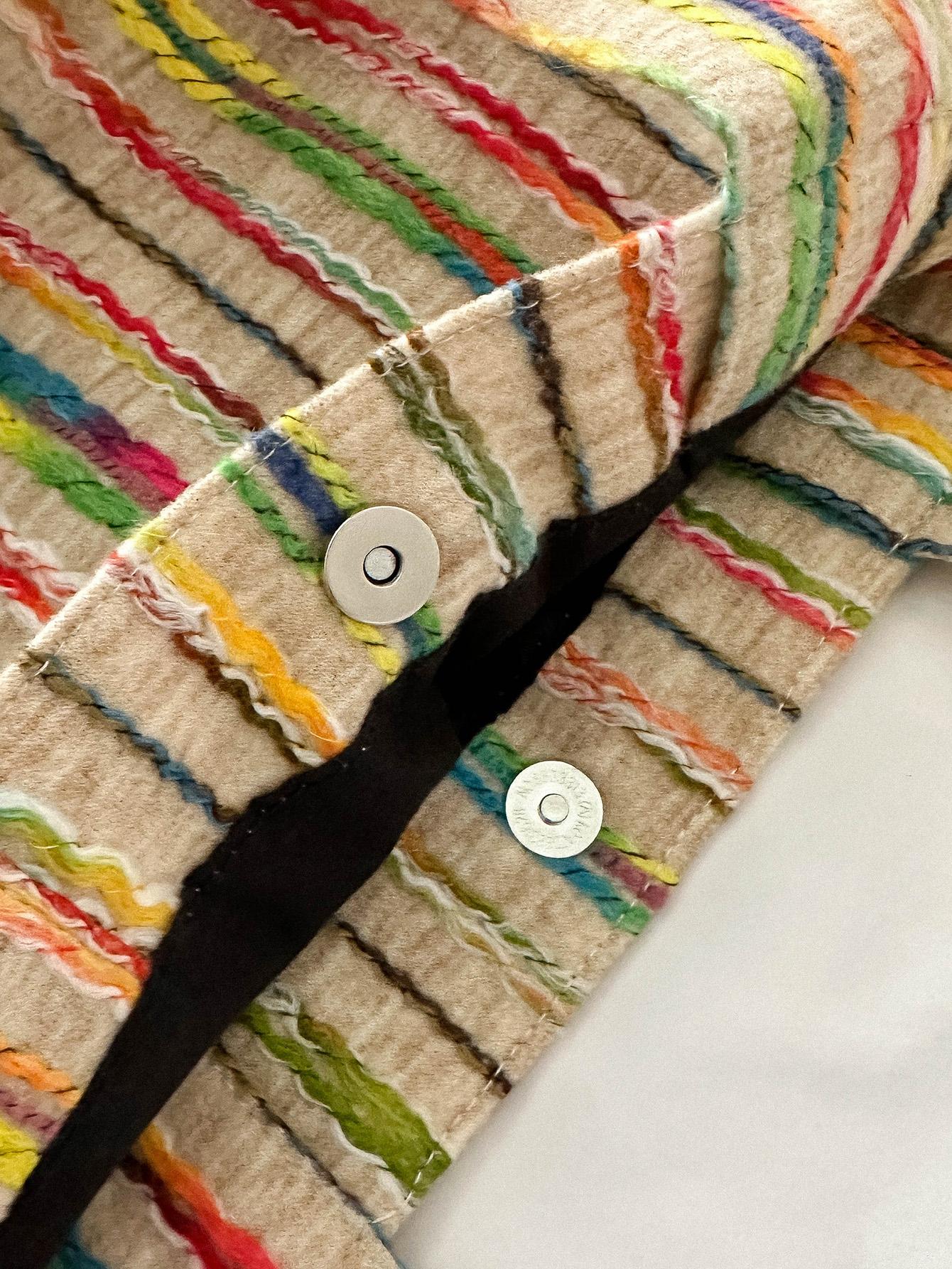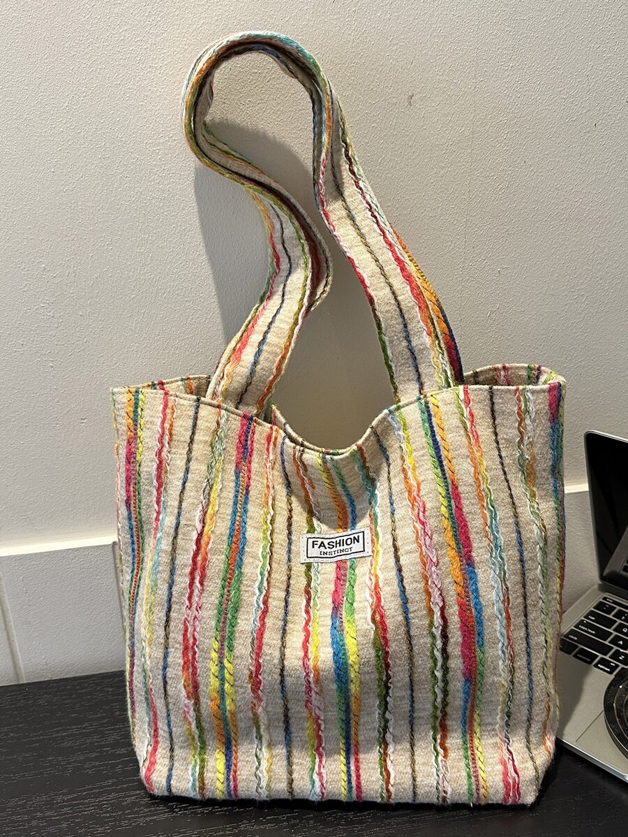 New Canvas Colorblock Striped Magnetic Buckle Shoulder Bag Simple Casual Ladies Tote Bag Suitable For Women's Vacation Casual Daily