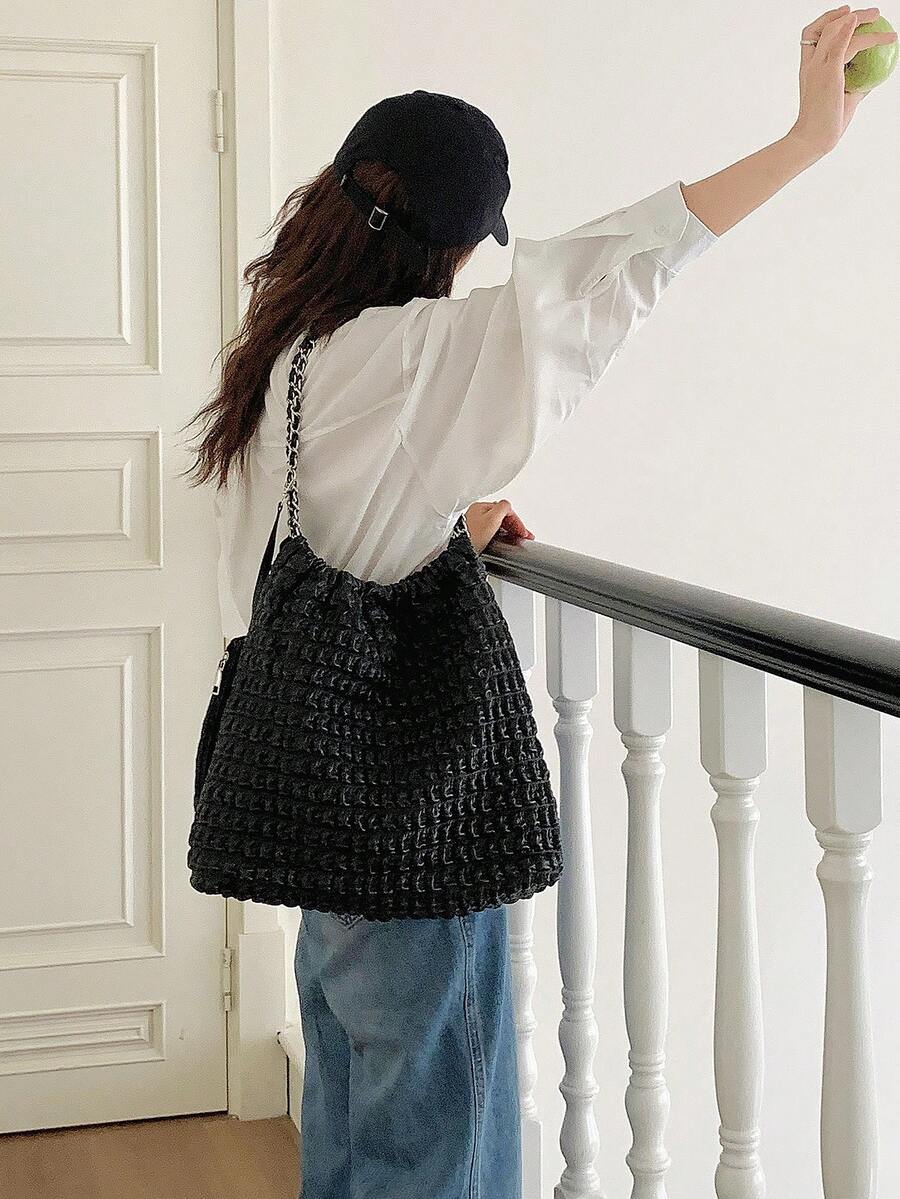 New Fashion Casual Pleated Tote Bag, Large Capacity Water Buckets Bag For Commute