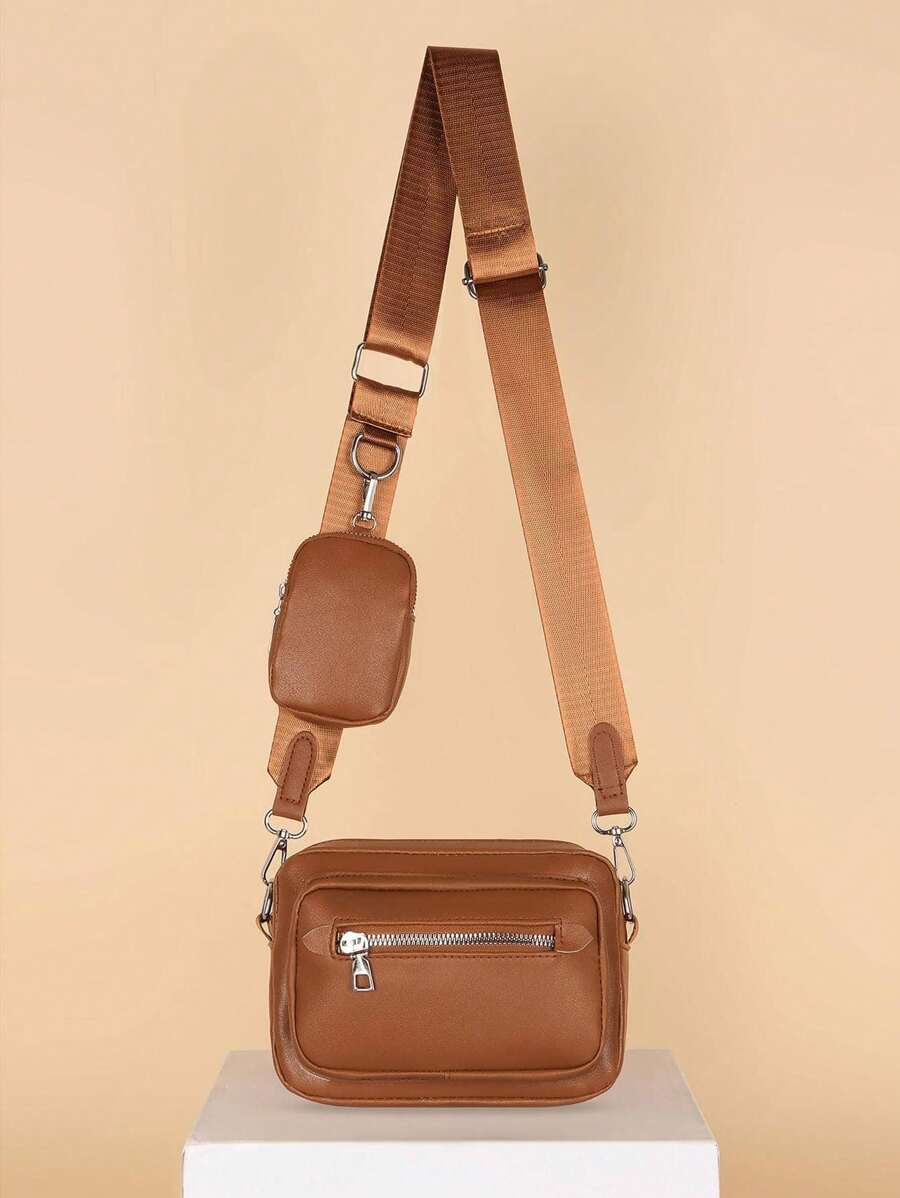 New Fashion PU Simple Solid Color Anti Splashing Front Zipper Patch Bag Single Shoulder Crossbody Bag with Zero Wallet