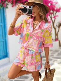 Soleia 2pcs/Set Women's Red & White Striped Knit Crop Top And Super Low-Waist Bodycon Shorts Set, Vacation, Party, Christmas, Valentine's Day, Date, Beach, Cruise, Carnival, Easter, Chinese New Year #2 Bestseller