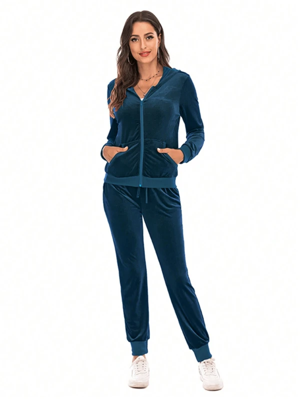 New Spring European And American Style Peacock Blue Women's Leisure Suit For Sports, Casual And At Home Being Fashionable
