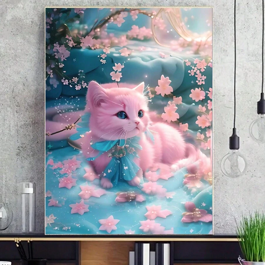 New Style Diamond Painting, Round Full Drill, Cartoon Animal Cat Decorative Art