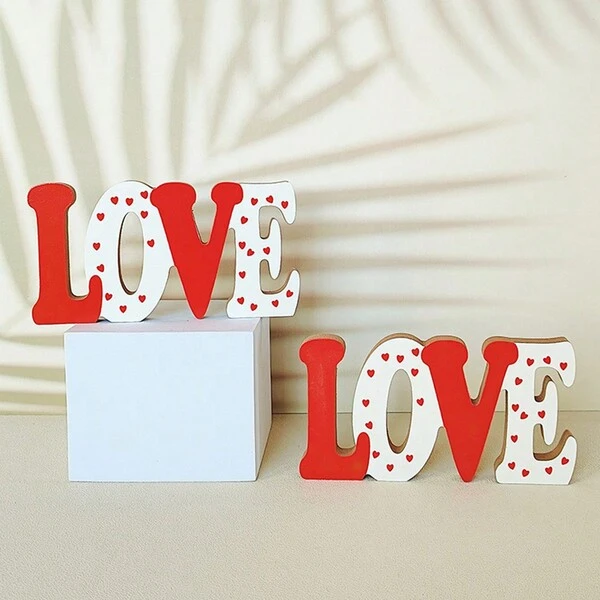 New Valentine'S Day Wooden Craft Decoration New Love Party Scene Layout Creative Wooden Chip Decoration