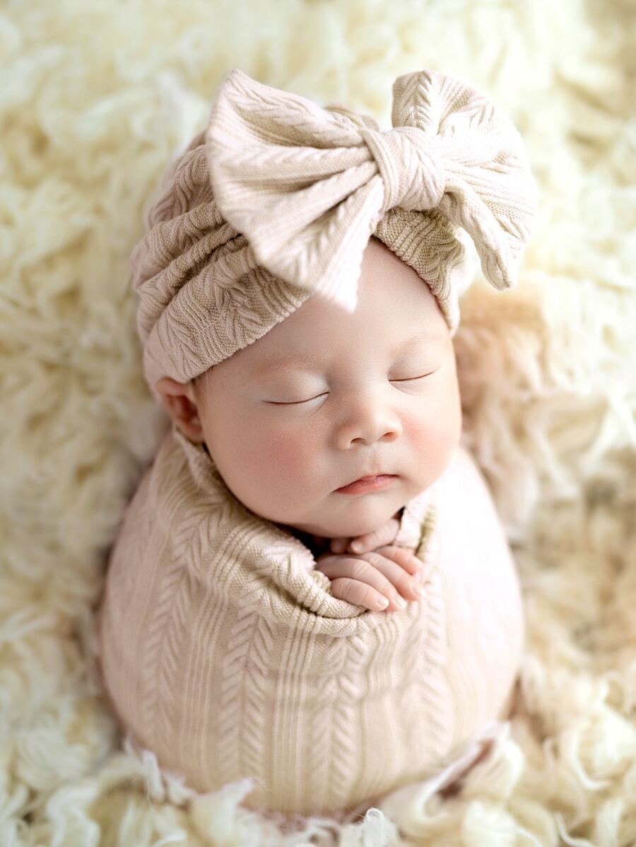 Baby Girl Newborn 3pcs Textured Blanket & Headband & Hat Photography Prop