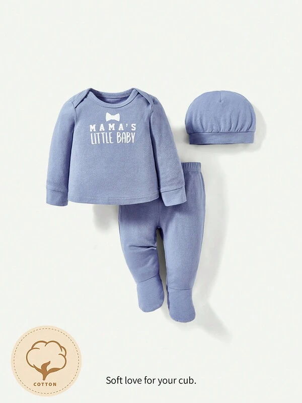 Cozy Cub Newborn Baby Boy Slogan Graphic Tee & Footed Pants & Hat PJ Set