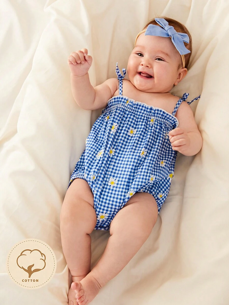 Cozy Cub Newborn Baby Floral & Gingham Print Cami Bodysuit