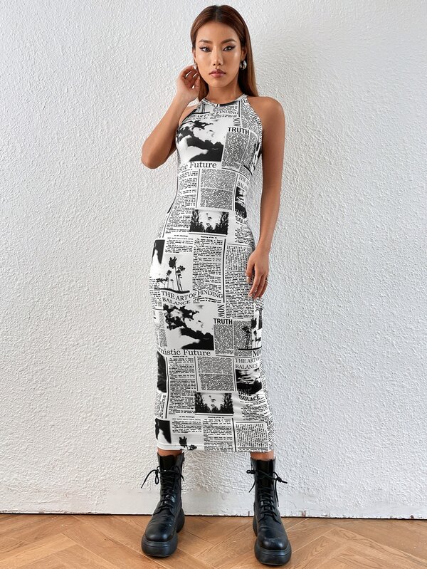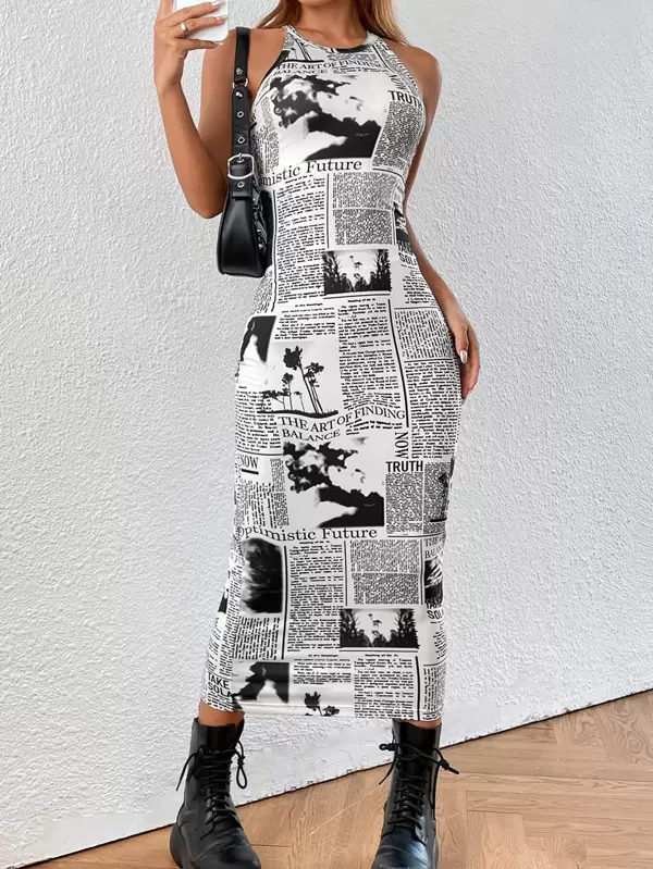 SHEIN Coolane Newspaper Print Bodycon Dress