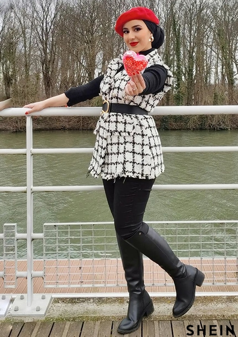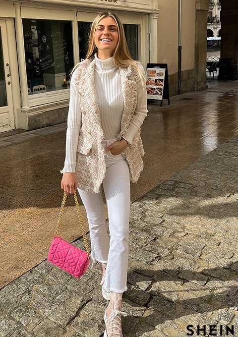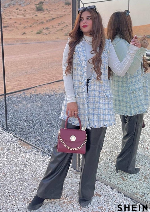 SHEIN BIZwear Notch Collar Frayed Edge Tweed Vest Blazer Workwear